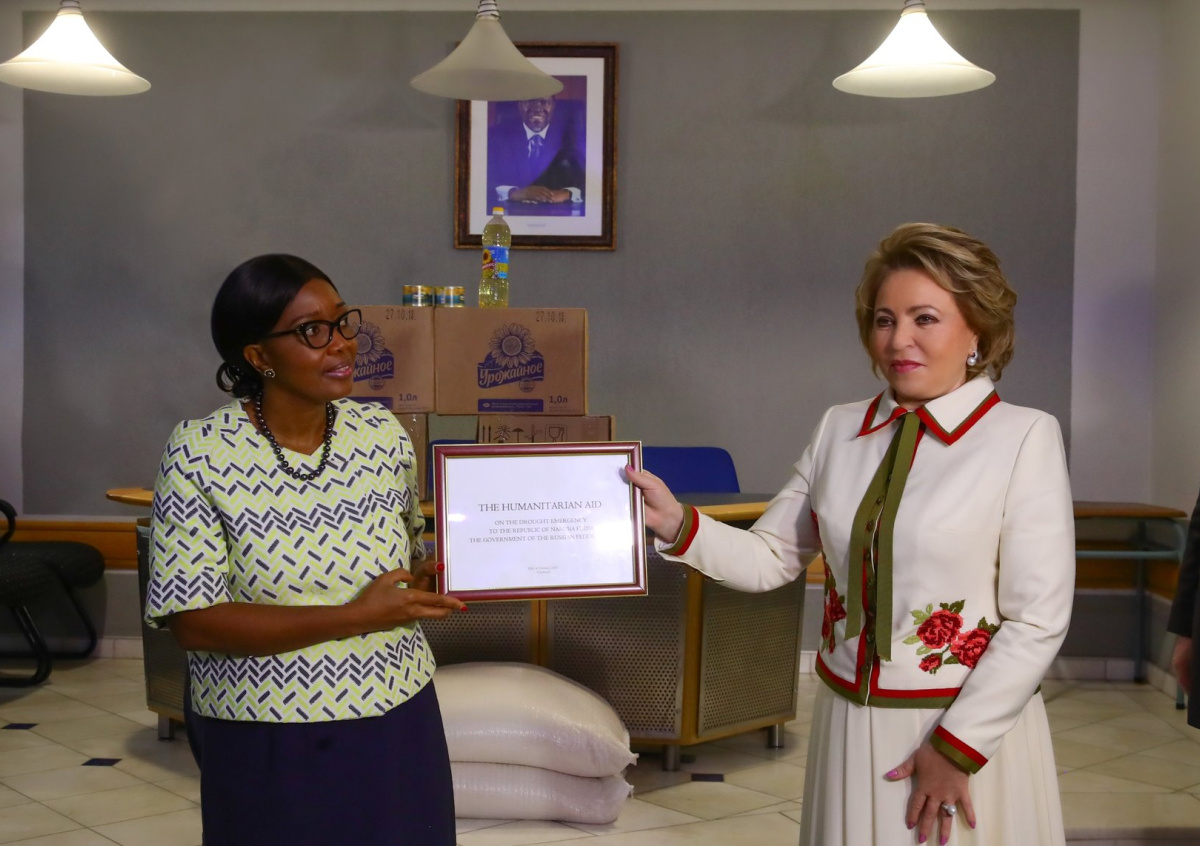 Премьер-министр Намибии Саара Куугонгельва-Амадила и Валентина Матвиенко Премьер-министр Намибии Саара Куугонгельва-Амадила и Валентина Матвиенко Фото: council.gov.ru