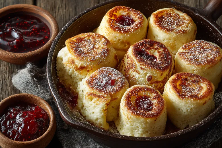 Смешайте 200 г муки с солью, влейте 450 мл теплого кефира, добавьте 2 яйца и 2 ст. л. сахара — взбивайте до консистенции жидкого йогурта. Дайте тесту отдохнуть 5 минут, затем пожарьте 10 блинов на горячей сковороде по 1 минуте с каждой стороны. Начинка: 300 г густого варенья (клубничного или вишневого) смешайте с 100 г сметаны. Намазывайте каждый блин толстым слоем, сворачивайте рулетом осторожно, чтобы не вытекло. Нарежьте рулетиками по 5 см, поставьте в форму вертикально. Посыпьте 1 ст. л. сахарной пудры. Запекайте 18 минут при 190 градусах — варенье карамелизуется. Блинчатые пирожки будут сочными и аппетитными.