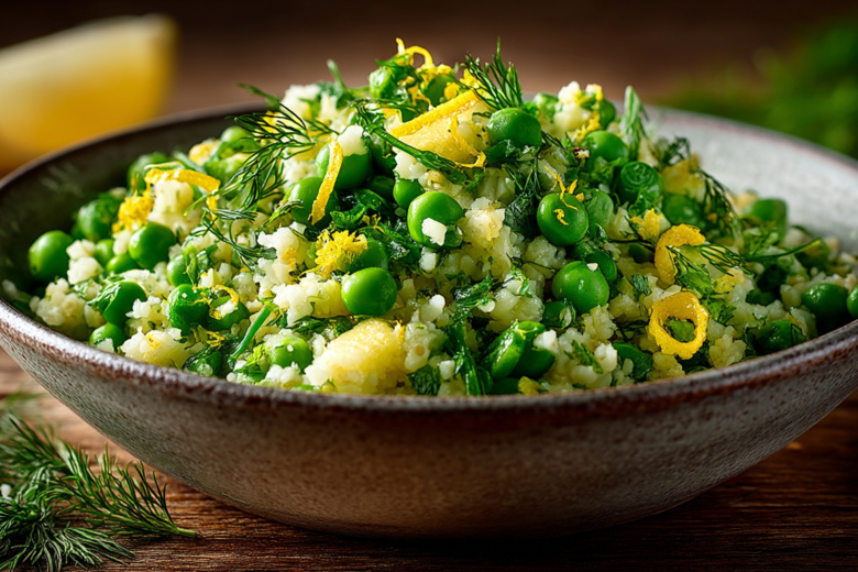 Вам понадобится глубокая жаропрочная посуда. Смешайте в ней стакан булгура с мелко нарезанным зубчиком чеснока и цедрой половинки лимона. Добавьте 0,5 ч. ложки соли, 30 г сливочного масла и залейте все 2 стаканами воды. Готовьте в микроволновке на максимальной мощности (около 800 Вт) примерно 10–12 минут. Затем достаньте блюдо, добавьте 100 г свежего или замороженного горошка и пучок мелко рубленного укропа, перемешайте и отправьте обратно еще на 2-3 минуты.