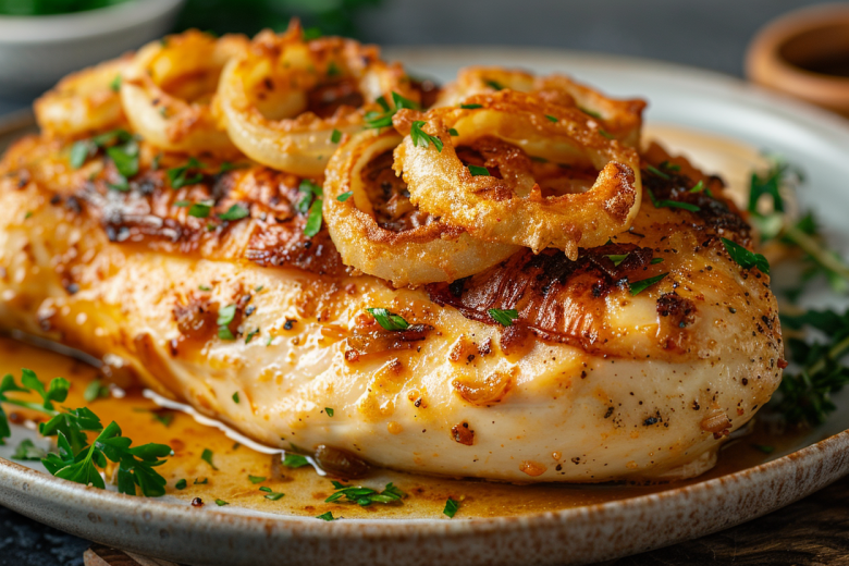 Куриная грудка часто получается сухой, особенно если готовить ее без соусов и маринадов. Этот рецепт решает проблему радикально: лук полностью закрывает мясо, отдает сок и защищает филе от пересыхания. В результате получается нежная, ароматная курица, которую можно подать и на ужин, и на праздничный стол.