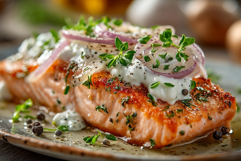 Готовить нежную горбушу таким способом — сплошное удовольствие без лишней суеты. Просто выкладываем филе на противень, покрываем его тонкими кольцами репчатого лука, обильно смазываем сметаной и отправляем в разогретую духовку. Никаких заморочек — всего 20 минут при 180°C, и рыба выходит невероятно сочной, с аппетитной корочкой. Сметана здесь играет ключевую роль: она пропитывает рыбу сливочной нежностью, добавляя легкую кислинку и аромат, от которого слюнки текут.