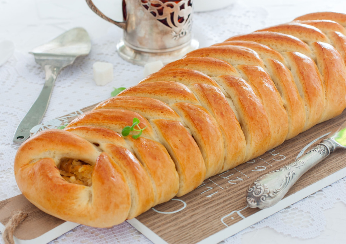 Кулебяка дрожжевая — это та самая воздушная, пористая красавица, которую описывали в романах. Для опары смешайте 200 мл теплого молока, 1 чайную ложку сахара и 10 г сухих дрожжей. Оставьте на 15 минут до появления пены. Всыпьте 300 г муки, щепотку соли по вкусу, добавьте 2 яйца и 50 г растопленного сливочного масла. Замесите тесто, оно будет липким, но муку не подсыпайте. Накройте и оставьте в тепле на час. Для начинки смешайте 300 г отварного риса, 3 вареных яйца, рубленый зеленый лук (20 г), соль и перец по вкусу. Можно добавить кусочки семги или грибы. Обомните тесто, раскатайте в прямоугольник, выложите начинку, защипните. Дайте пирогу расстоятся на противне 20 минут. Смажьте желтком, выпекайте при 180 градусах 40 минут. Кулебяка дрожжевая получается невероятно пышной, с золотистой корочкой и нежнейшим мякишем.
