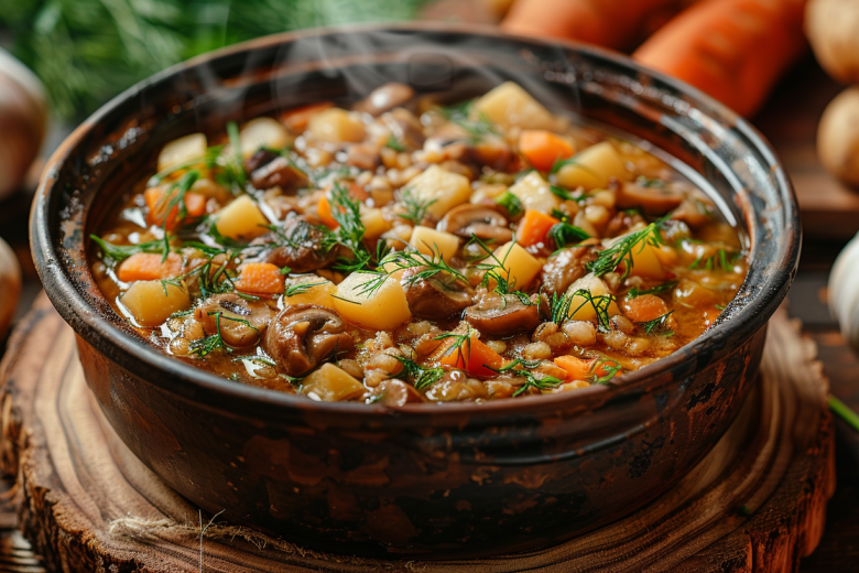 В России любят еду, которая согревает и дает силы на весь день. Это рагу — идеальное сочетание привычных нам продуктов: грибов, разваристой перловки и овощей. Блюдо получается густым и наваристым.