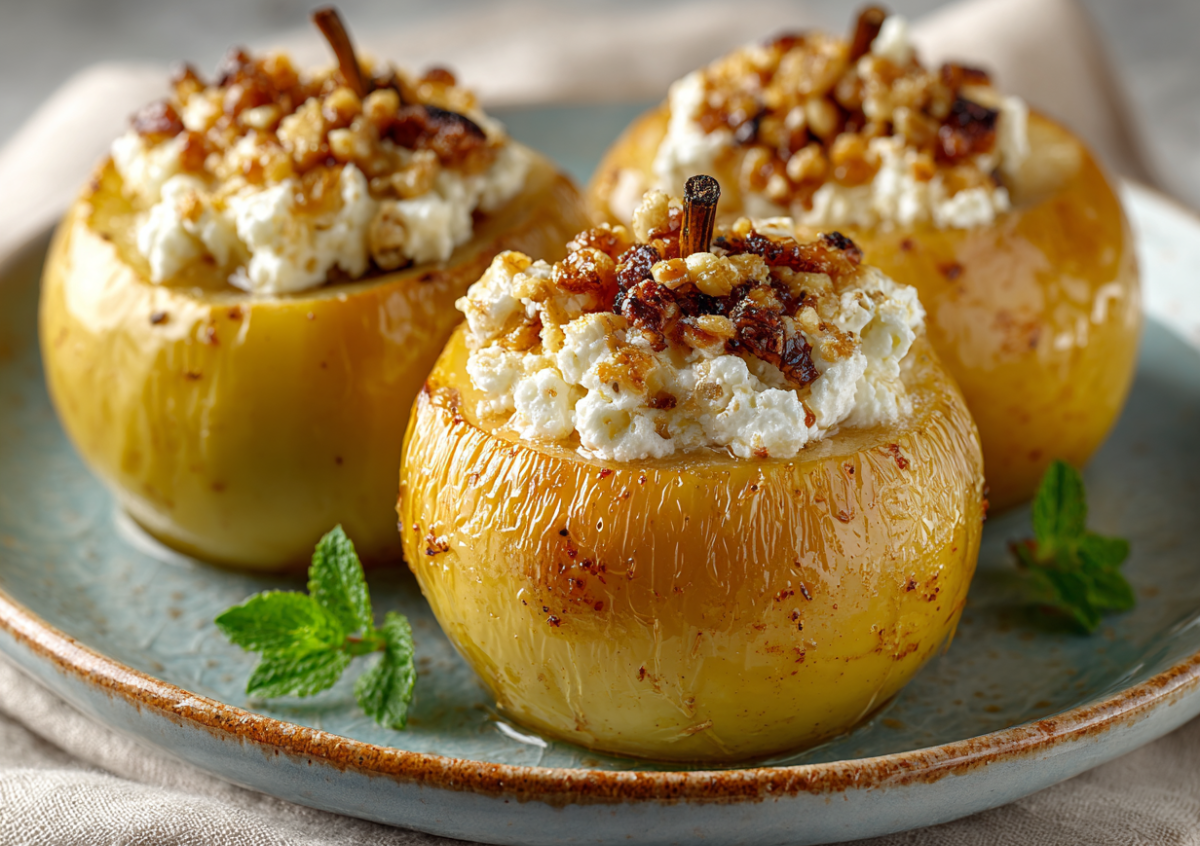 Запекаем при 180°C 25–30 минут до мягкости яблок и легкого румянца на твороге.
