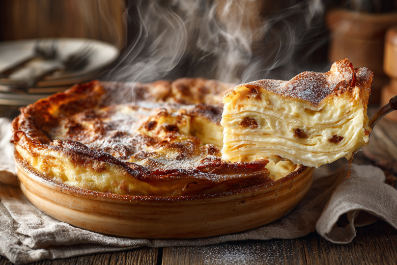 Если блинов напекли слишком много и обычные с начинкой уже приелись, эта запеканка — идеальное решение. Она превращает остатки выпечки в нежнейший десерт, который напоминает суфле или творожную запеканку, но с более интересной текстурой. Подавать можно со сгущенкой, вареньем или просто так — в любом варианте получается объедение.