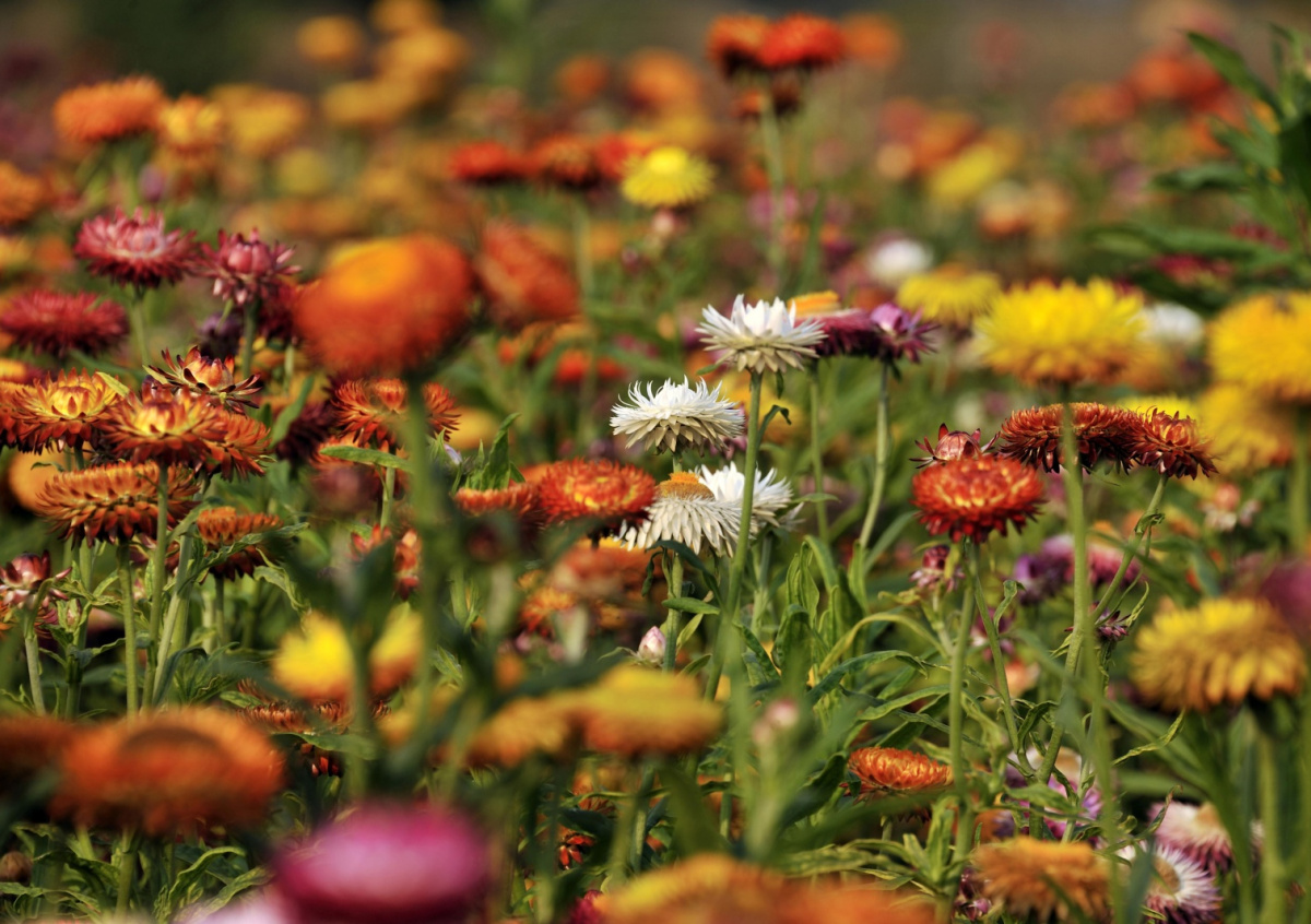 Гелихризум (бессмертник) — классика жанра, выдерживает засуху и бедные почвы, цветет с июля по октябрь, лепестки буквально «законсервированы» природой.