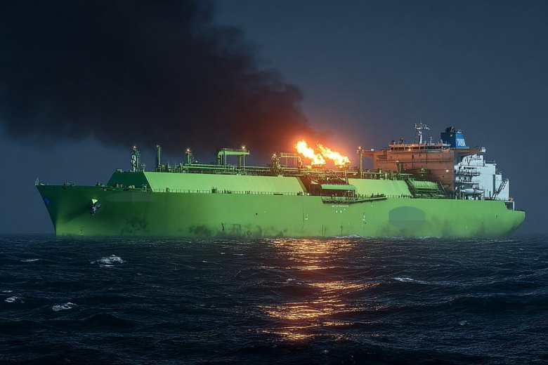 Атака безэкипажными катерами ВСУ российского танкера Arctic Metagaz со сжиженным газом в Средиземном море попала на видео, которое опубликовал Telegram-канал Baza. Судя по кадрам, после удара начался крупный пожар.