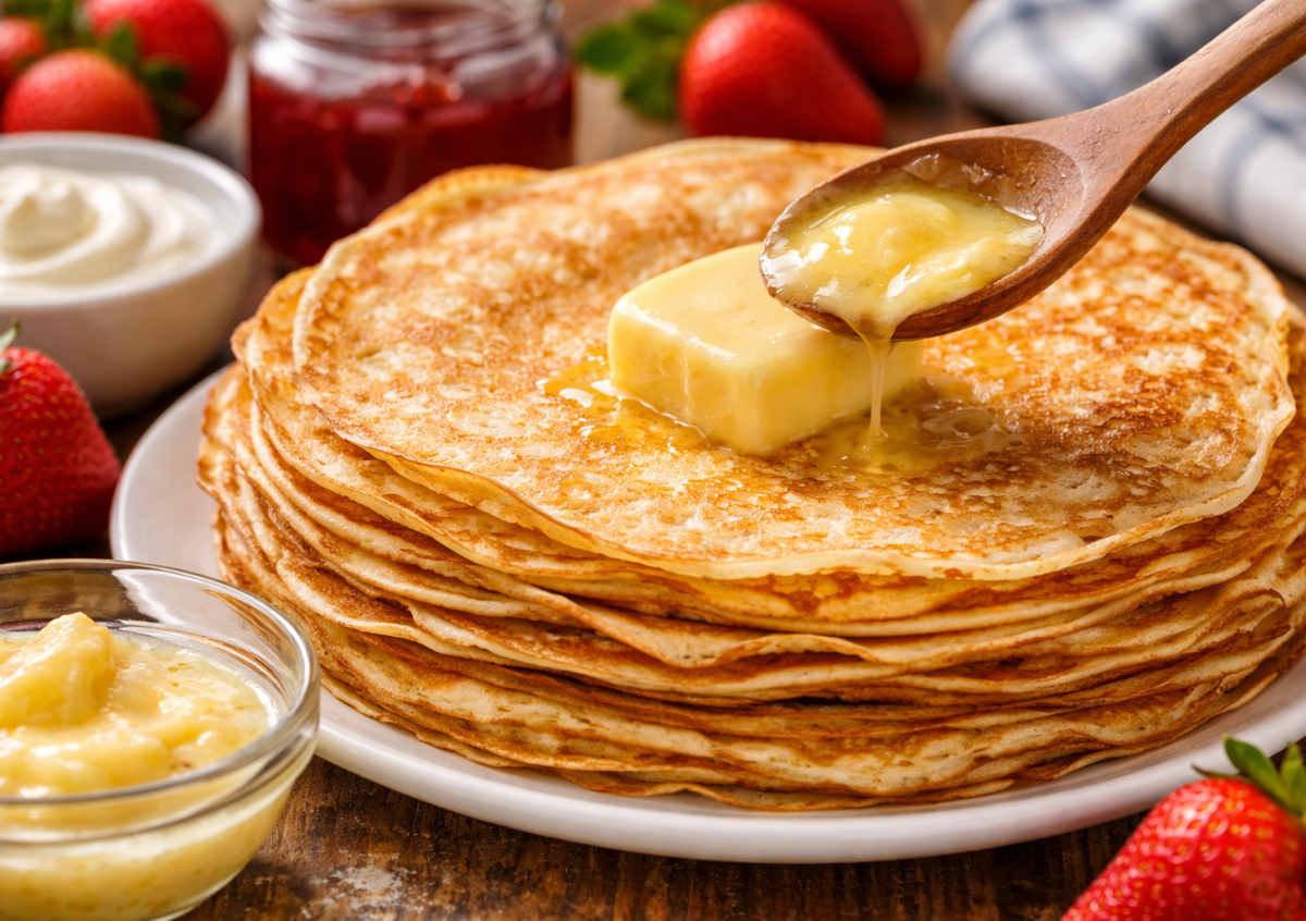 Если вы ищете идеальные блины — тонкие, нежные и с хрустящими краями, попробуйте этот вариант. Весь секрет — в сливочном масле: именно оно делает текстуру мягкой, а вкус — насыщенным. Рецепт простой, но результат всегда радует.