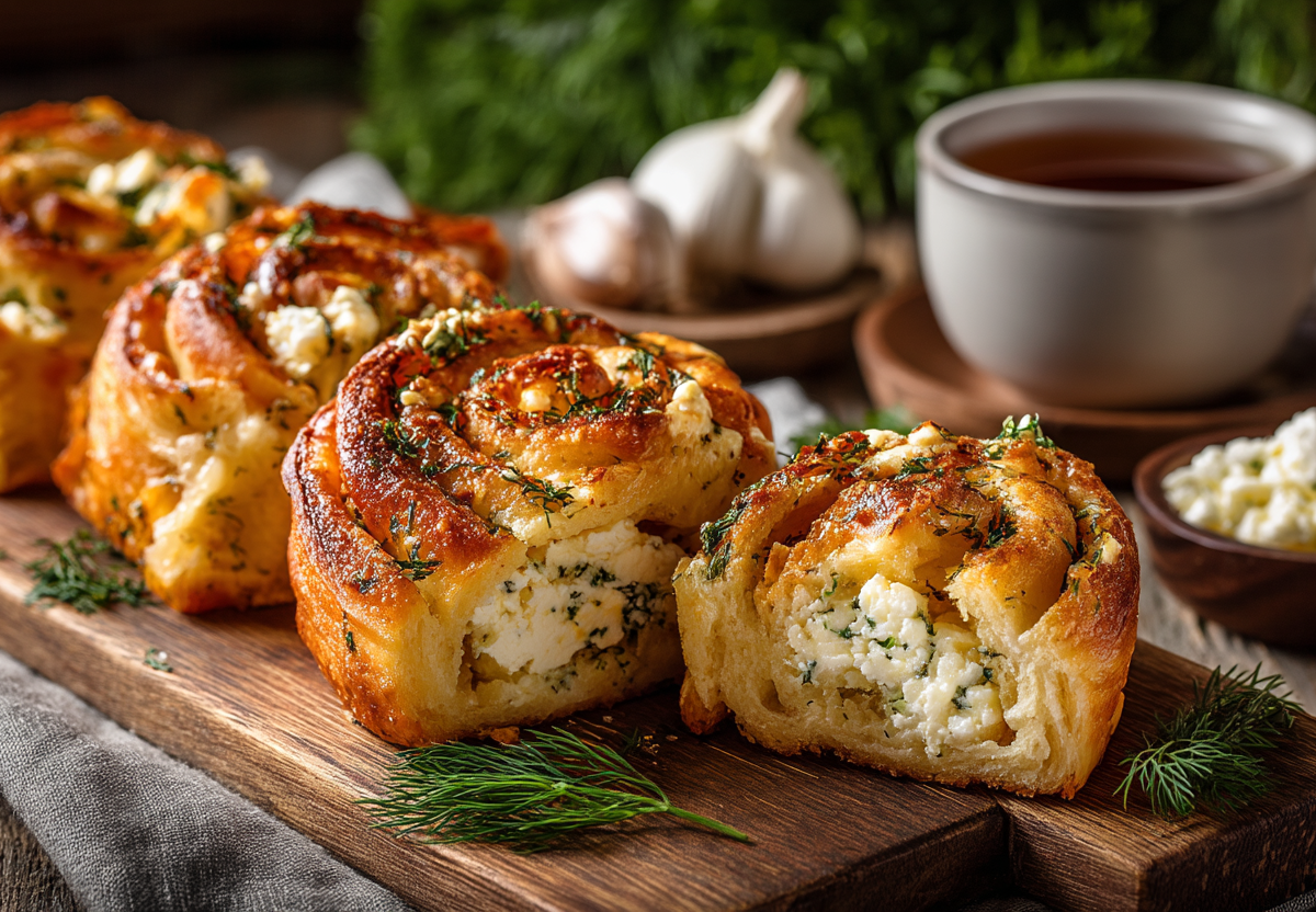 Получается обалденная вкуснятина: золотистое слоистое тесто с хрустящей корочкой, а внутри — нежная творожная начинка с чесноком и свежей зеленью, которая буквально тает во рту.
