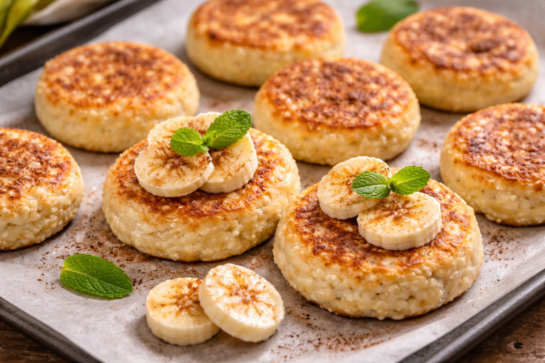 Эти сырники — отличный вариант для лёгкого завтрака или полезного перекуса. Вместо жарки они готовятся в духовке, поэтому получаются менее калорийными, но при этом остаются мягкими внутри. Спелый банан добавляет естественную сладость и приятный аромат, а корица делает вкус ещё более уютным и «домашним». В итоге получается простой и полезный десерт, который нравится и взрослым, и детям.