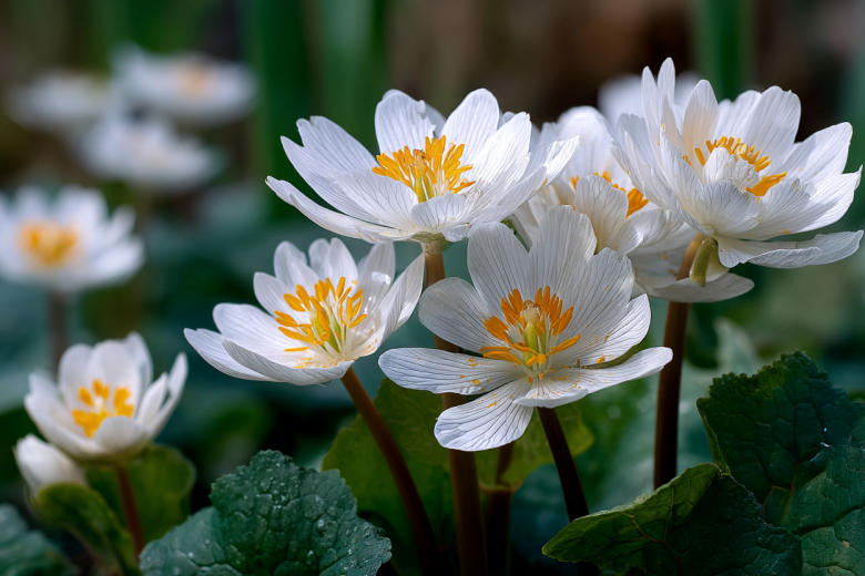 Этот уникальный цветок, известный своей феноменальной теневыносливостью, способен цвести даже в условиях, напоминающих пещерную темноту. Его нежные, похожие на водяные лилии или ромашки, белые цветы на фоне густой голубовато-зеленой листвы создают магическое свечение в самых мрачных уголках участка. Главный секрет сангвинарии — ее невероятная неприхотливость. Посаженная в рыхлую, влажную почву под пологом деревьев, она годами будет расти на одном месте, не требуя практически никакого ухода.
