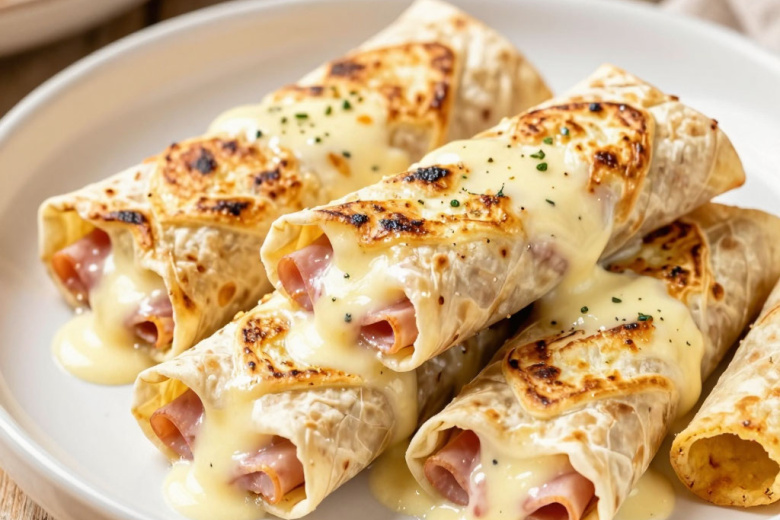Трубочки из лаваша, запеченные в соусе, — моя новая находка для быстрого ужина. Беру тонкий лаваш, ветчину и сыр, сворачиваю рулетики и запекаю под ароматной заливкой.