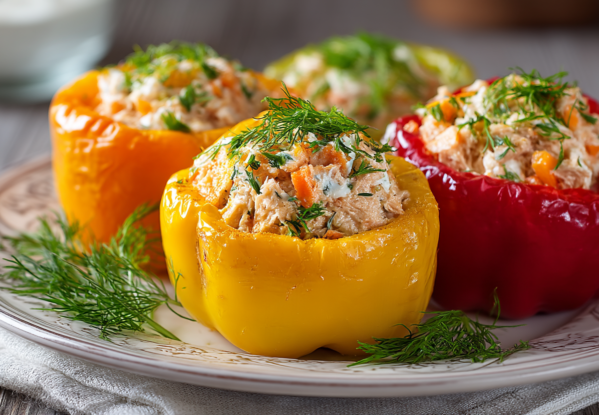 Хрустящие лодочки сладкого перца наполняются нежным салатом из тунца, сырой моркови, сыра и йогурта с пикантной ноткой соевого соуса. Эта вкуснятина идеально подходит для легкого ужина или праздничного стола.