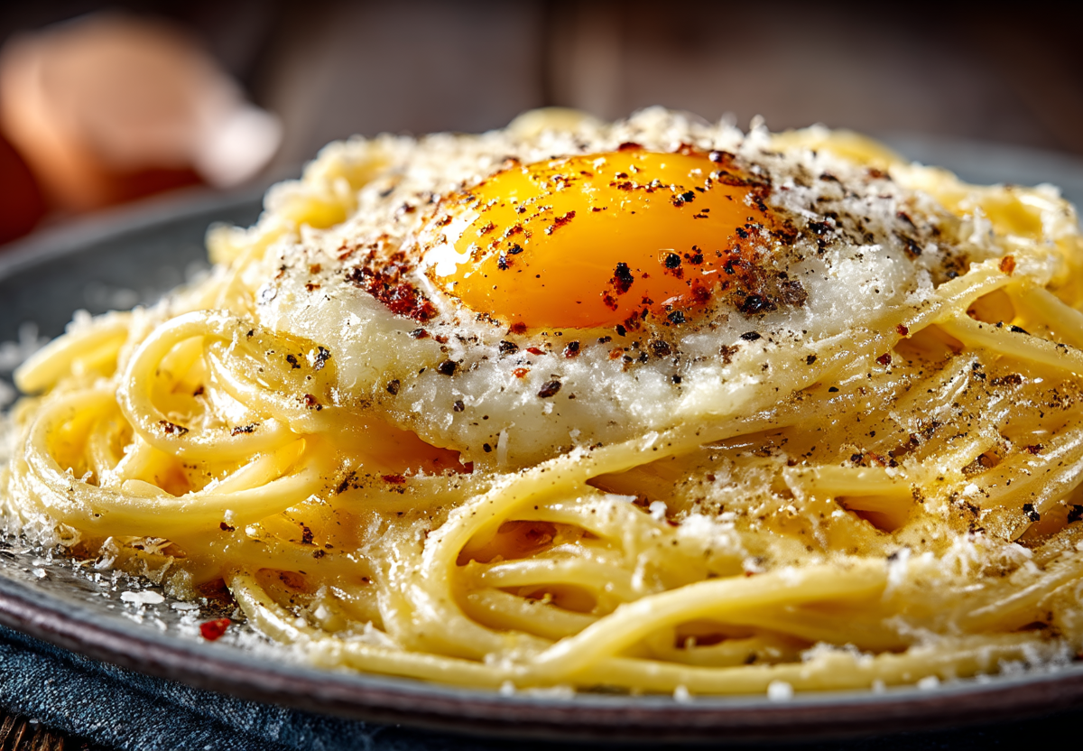 Важно не передержать, чтобы яйца не стали резиновыми. Немедленно снимите с огня, разложите по тарелкам и щедро посыпьте оставшимся тертым сыром. Подавайте сразу, пока паста сохраняет свою кремовую текстуру.