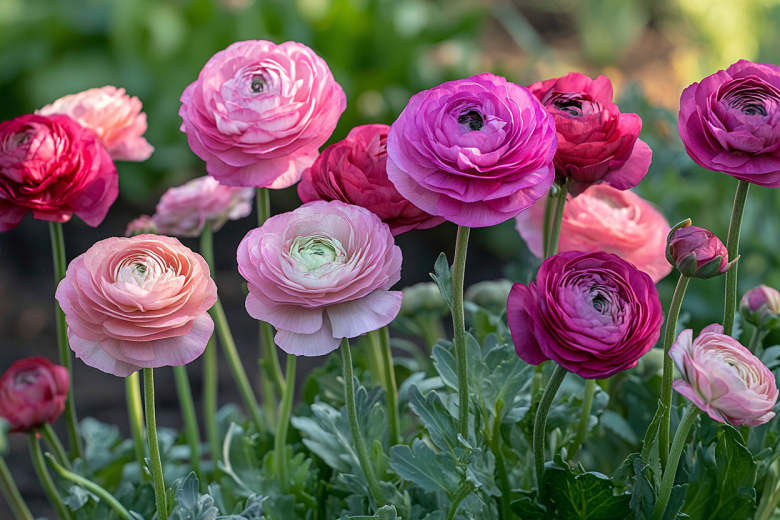 Ранункулюсы, или лютики садовые, — это многолетники, которые поражают своей нежной красотой и изяществом. Их плотные, многослойные цветки напоминают маленькие пионы или махровые розы, а палитра оттенков варьируется от белоснежного и нежно-розового до ярко-оранжевого и бордового.