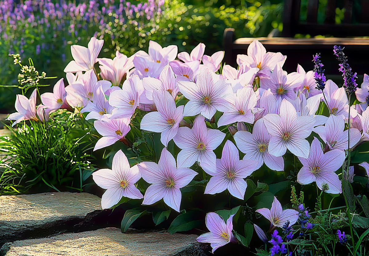 Уход за ним минимален: он почти не болеет, устойчив к вредителям, предпочитает солнечные места или полутень и нуждается лишь в умеренном поливе. Платикодон отлично смотрится в миксбордерах с флоксами и пионами, в рокариях, а его срезанные цветы долго стоят в вазе.