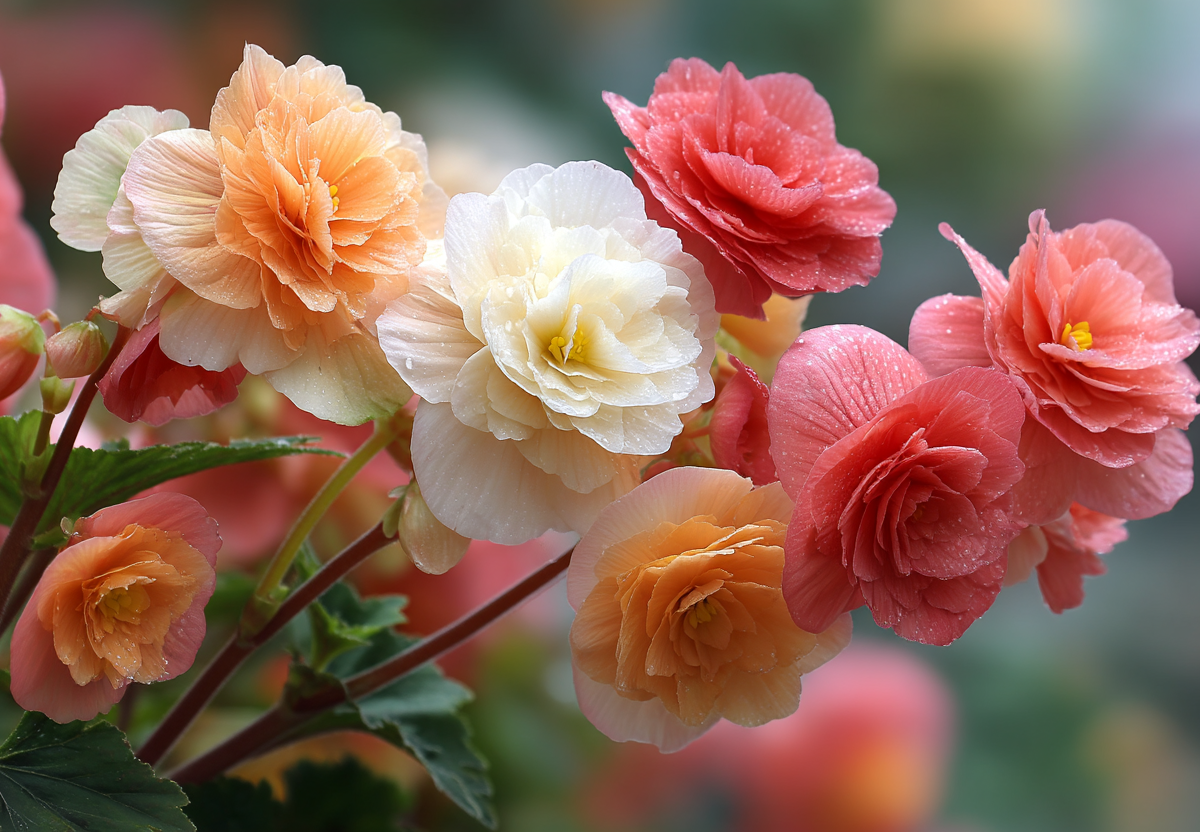Современные клубневые разновидности радуют глаз с начала лета до самых заморозков, прекрасно чувствуя себя даже в легкой тени, где многие «королевы» отказываются цвести. Низкорослые кустики (всего 15–25 см) идеально подходят для оформления бордюров, рабаток и переднего плана цветников, а разнообразие оттенков — от ослепительно-белого и нежно-лососевого до ярко-красного и желтого — позволяет создавать удивительные композиции.