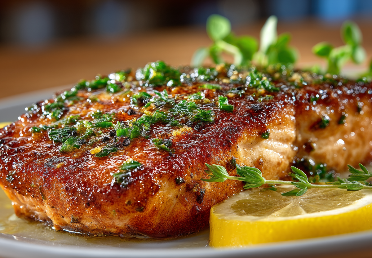 Обжаривайте с каждой стороны по 3–4 минуты до образования плотной золотистой корочки. Не переворачивайте рыбу слишком часто — дайте корочке хорошо схватиться. Готовые стейки сразу подавайте, дополнительно сбрызнув лимонным соком.