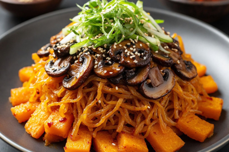 Новый год — праздник, объединяющий самые разные вкусы и традиции, и для многих важно, чтобы на столе были не только роскошные, но и постные блюда. Салат «Копна сена» из тыквы с грибами по-корейски — это тот самый яркий, пикантный и очень оригинальный вариант, который не оставит равнодушным даже убеждённых мясоедов. Игра контрастов здесь беспроигрышна: сладковатая хрустящая тыква, маринованные опята с их лесным ароматом и огненная корейская приправа создают взрывной вкусовой букет. А благодаря соевому соусу, чесноку и кунжуту этот салат с лёгкостью заменит собой любую экзотическую закуску, став настоящим открытием новогодней ночи.