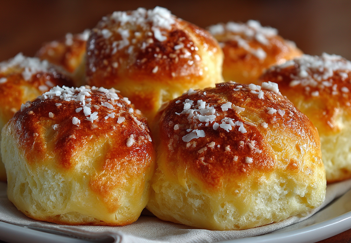 Получается обалденная вкуснятина: румяные, пышные булочки с нежной, чуть влажной текстурой, ароматом ванили и кокоса, которые тают во рту, оставляя приятное сливочное послевкусие.
