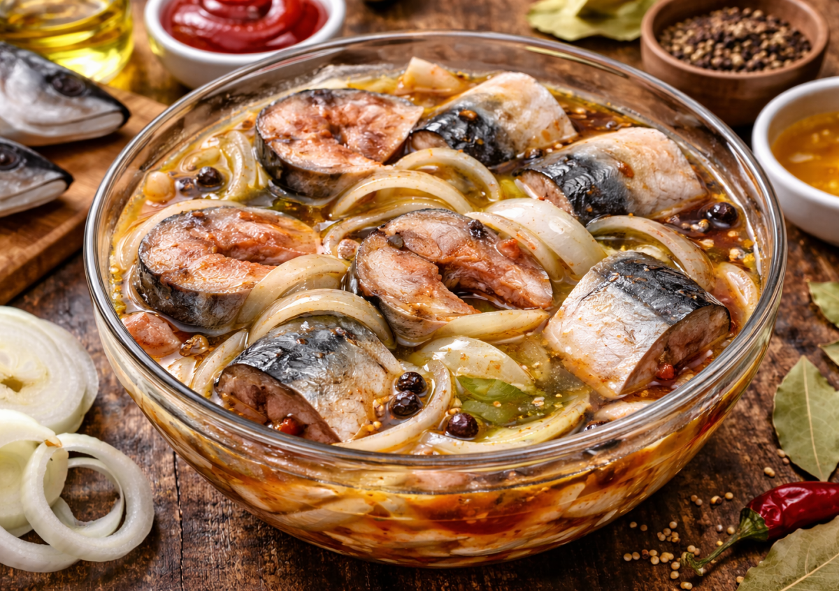 Раньше я тоже думала, что вкусная закуска — это обязательно красная рыба. Но стоило один раз замариновать скумбрию по этому рецепту — и все, теперь она у меня вне конкуренции. Получается нежная, ароматная, с насыщенным вкусом — идеально к любому столу.