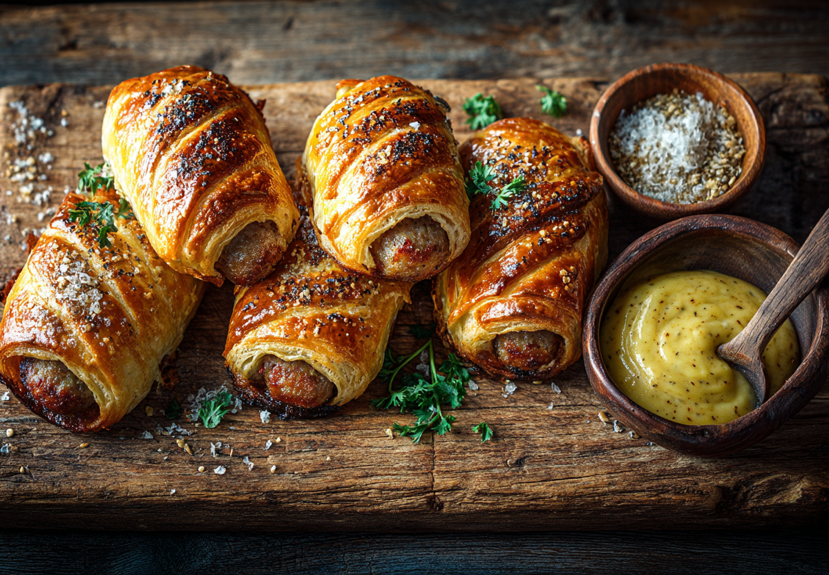 Знакомый с детства формат — сосиска в тесте — раскрывается здесь с неожиданной стороны. Благодаря простому трюку с травяным маслом и особым режимом запекания обычная закуска превращается в по-настоящему праздничное и очень ароматное блюдо.