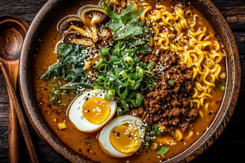 Рамен — это не просто суп с лапшой, а целая философия комфорта и глубины вкуса. Мой вариант — это дань уважения азиатским традициям, адаптированным для домашней кухни. Здесь обжаренный фарш с имбирем и чесноком создает насыщенную основу, вешенки добавляют благородный грибной акцент, а паста и порошок карри дарят то самое согревающее тепло с восточным характером.