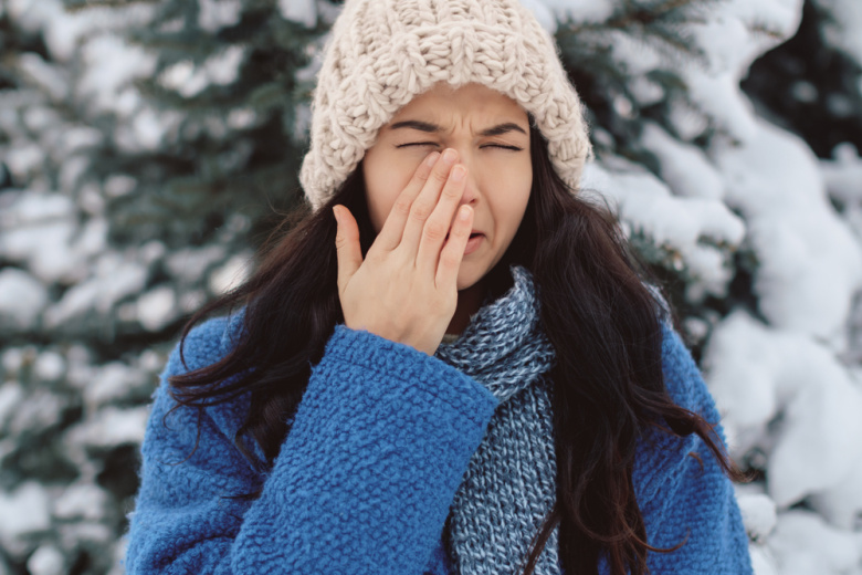 Секрет борьбы с этим — перенаправить поток воздуха, который обдувает лицо. Самый эффективный способ — опустить голову и смотреть вниз, в землю, в первые 30 секунд пребывания на улице. Когда вы идете, подняв голову, холодный ветер бьет прямо в глаза, усиливая раздражение. Опустив подбородок, вы меняете угол атаки, и поток воздуха скользит по лбу и векам, не попадая напрямую на чувствительную поверхность глаза.