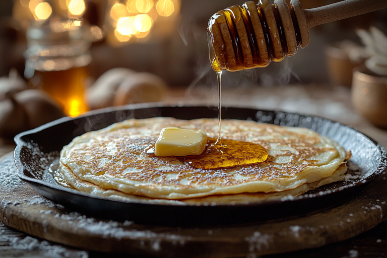 Жарю на среднем огне. Когда поверхность схватится и покроется множеством лопнувших пузырьков, а края подсохнут (это видно), аккуратно лопаткой переворачиваю. Жарю с другой стороны до румяности. Подаю сразу, горячими, с маслом, сметаной или медом.