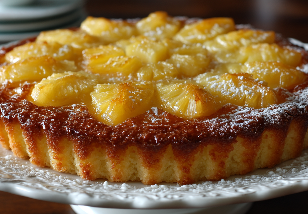 Это гениально простое и невероятно вкусное угощение, идеальное для чаепития или семейного вечера. Получается обалденная вкуснятина: мягкий влажный бисквит с кисло-сладкими ананасами, ароматом ванили и карамельной корочкой.