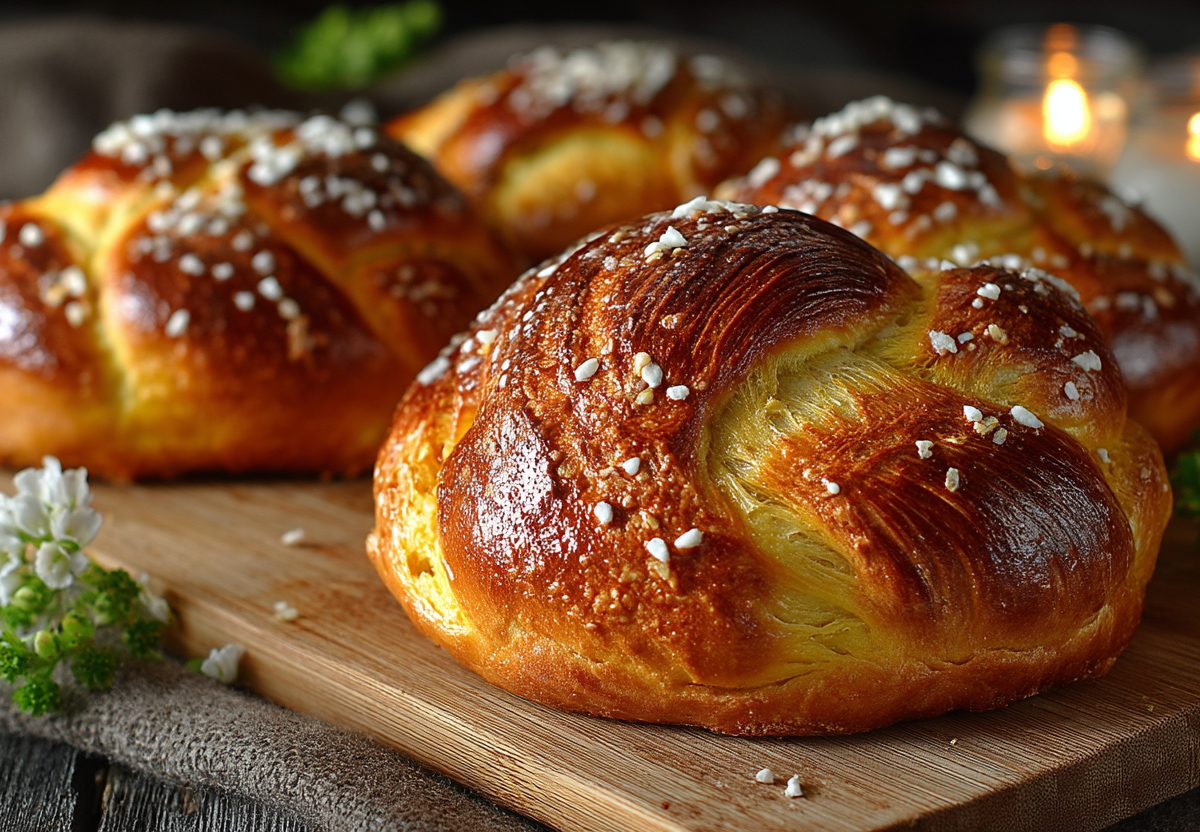Греческие пасхальные булочки-косы цуреки — это традиционное угощение, которое пекут в Греции на Светлую Пасху. Их нежный, волокнистый мякиш с ароматом мастики и махлепи покоряет с первого куска, а румяная корочка и яйцо в центре делают выпечку настоящим украшением стола.