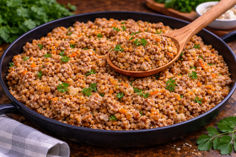 Многие обходят гречку стороной, считая её сухой и скучной, но этот рецепт полностью меняет мнение. Гречка по-купечески получается сочной, ароматной и насыщенной вкусом благодаря фаршу, овощам и специям. Всё готовится в одной сковороде без лишней возни — отличный вариант сытного ужина для всей семьи.