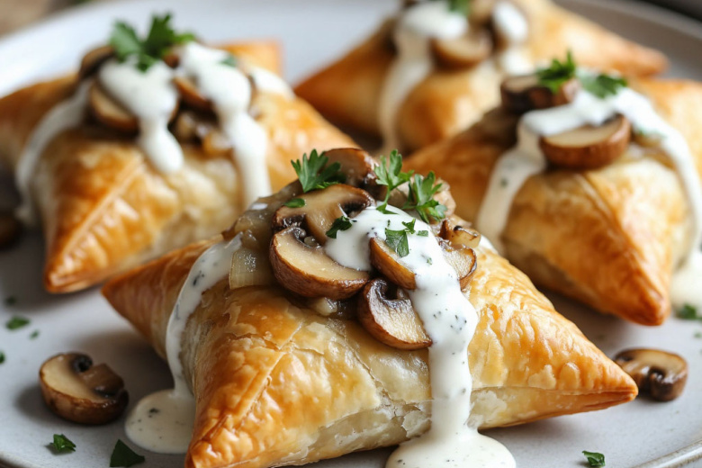 Грибы с луком, немного сметаны — делю на порции из теста фило. Хрустящие самосики с ароматной начинкой. Это гениально простое и невероятно вкусное блюдо, идеальное для изысканной закуски или легкого ужина.