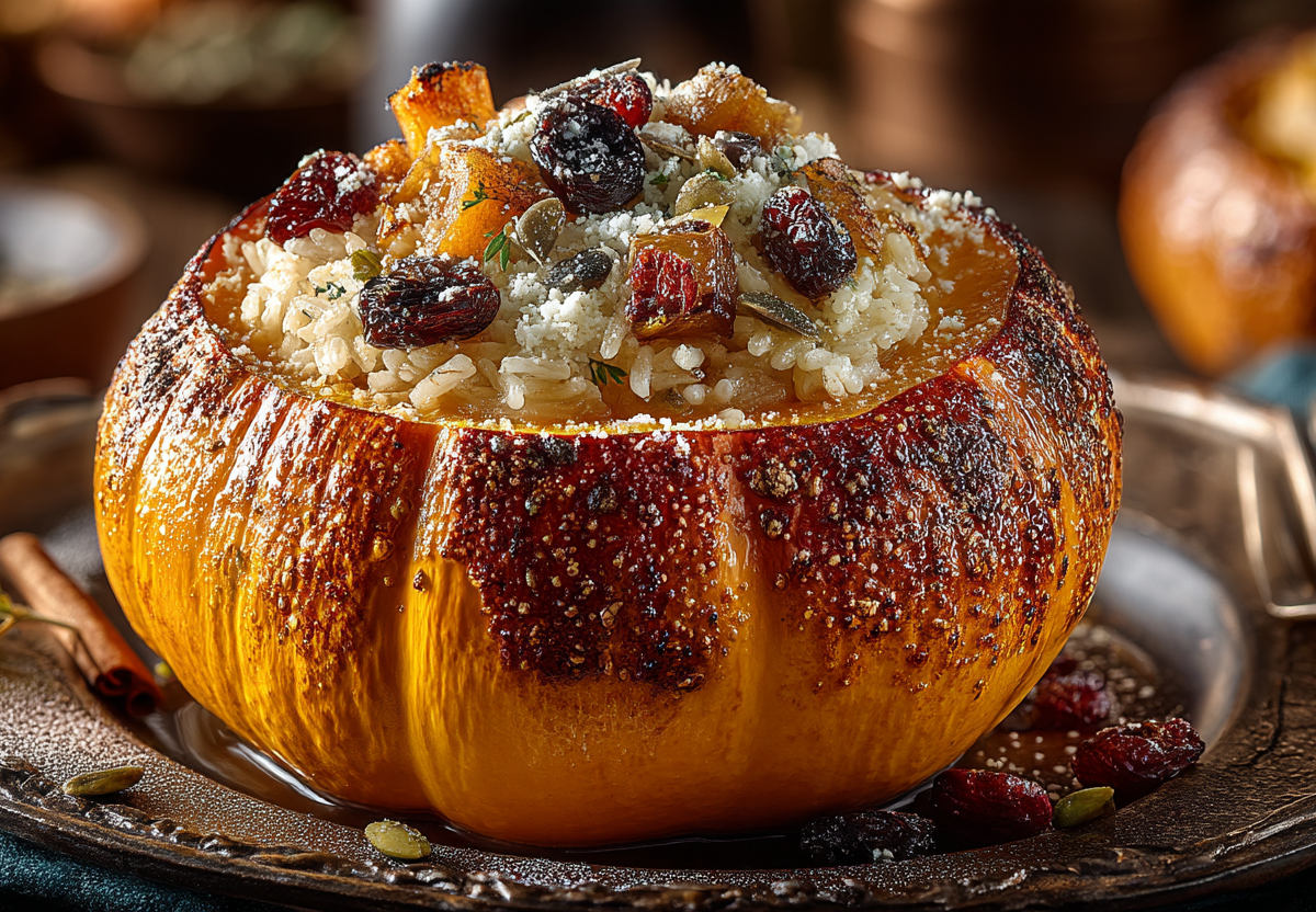 Хапама — это кулинарный спектакль, где главную роль играет тыква, превращаясь и в горшок, и в ингредиент. Внутри, под крышкой-верхушкой, рис с сухофруктами впитывает сладость тыквенной мякоти и масла, создавая невероятно гармоничный и представительный десерт или основное сладкое блюдо.