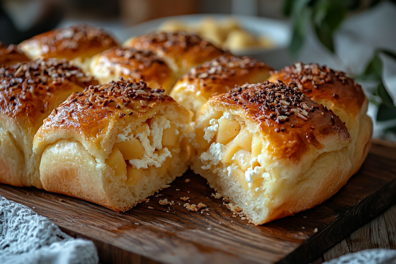 Выпекаю в разогретой до 180 °C духовке 22–25 минут. Булочки должны хорошо подрумяниться, стать золотисто-коричневыми, но оставаться мягкими на ощупь. Даю им немного остыть на противне — они станут плотнее. Подаю теплыми или остывшими.