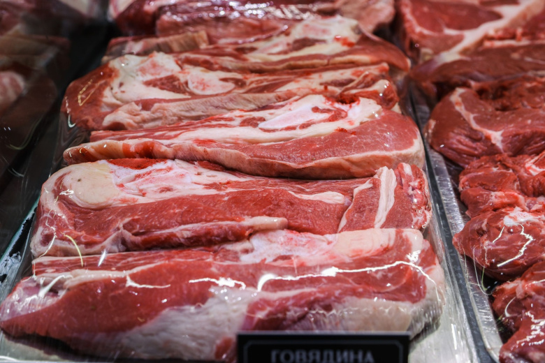 В первую очередь смотрите на цвет. У свежего охлажденного мяса он ровный и естественный — от светло-розового до насыщенного, без серых пятен и потемнений. Жир тоже многое подсказывает: он должен быть белым или слегка кремовым, плотным и упругим. Если жировая прослойка мягкая или с розовым оттенком, мясо уже размораживали.