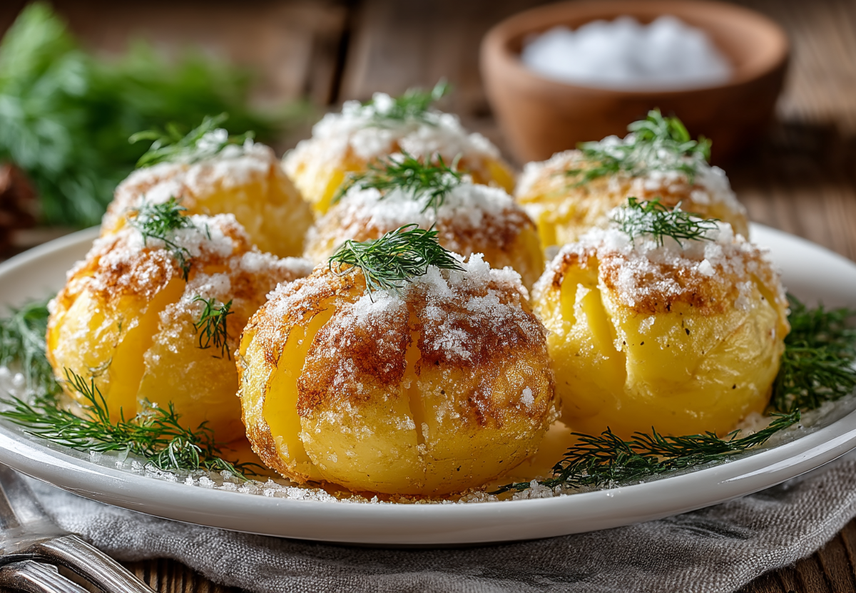 Кожура становится плотной, чуть поджаренной, а внутри картофель остается рассыпчатым и нежным. Секрет в смеси соли и муки, которая создает аппетитную оболочку.