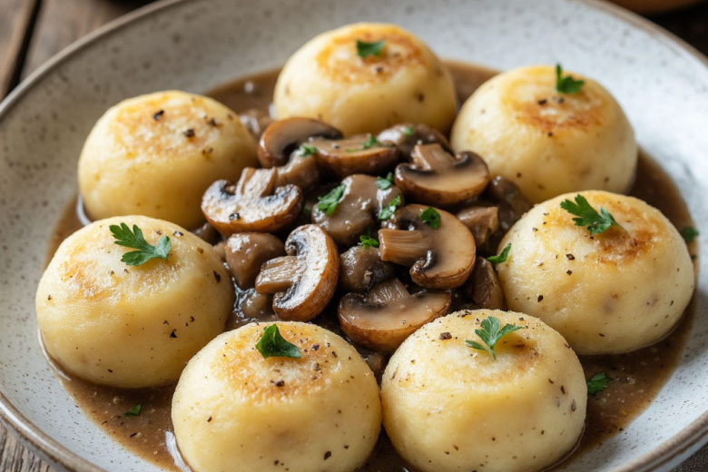 Эти картофельные клецки — прекрасный пример простой и гениальной белорусской кухни, где главные герои — душистый грибной соус и невероятно нежные, воздушные шарики из картофельного теста. Их волшебство в том, что лепить каждую клецку вручную не нужно: тесто просто нарезается ножом и отправляется в кипящую воду, что делает процесс приготовления быстрым и совершенно необременительным. Блюдо получается сытным, ароматным и по-настоящему домашним, способным согреть и порадовать в любой день.