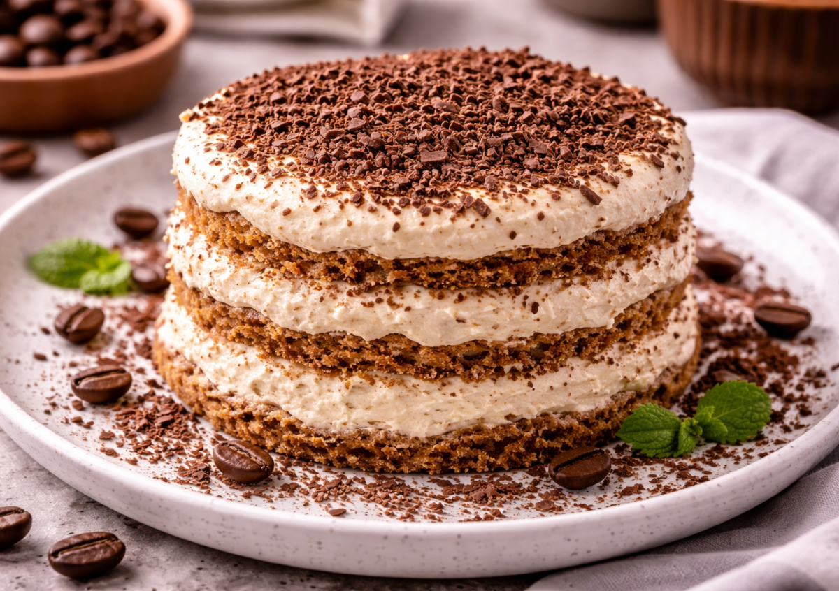 Это кофейное пирожное — находка для тех, кто следит за питанием, но не готов отказываться от сладкого. Воздушные белковые лепешки с легким кофейным ароматом и нежный творожный крем создают идеальное сочетание: мягко, сливочно и при этом не тяжело. Отлично подходит к утреннему кофе или как перекус.