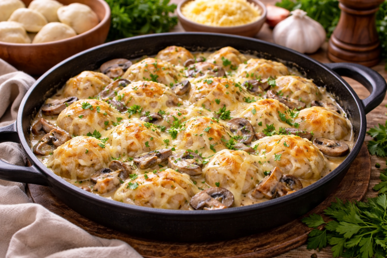 Иногда на готовку совсем нет времени, а хочется подать на стол что-то горячее и по-настоящему уютное. В такие моменты выручают самые обычные магазинные пельмени. Стоит добавить к ним грибы, сливки и немного сыра — и привычное блюдо превращается в почти ресторанный ужин, который съедают без уговоров.