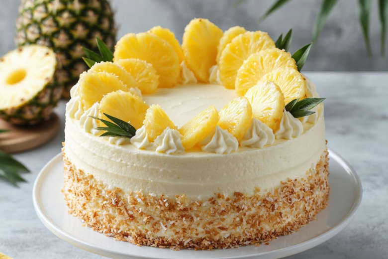 Кокосовая стружка, ананасы и легкий бисквит. Торт «Райское наслаждение» — тропический, свежий и очень солнечный. Это гениально простое и невероятно вкусное блюдо, идеальное для летнего праздника или чтобы добавить ярких красок в хмурый день.