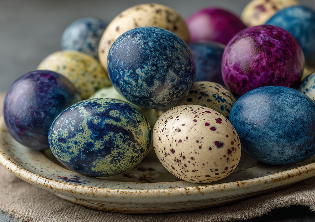 Если хочется украсить пасхальный стол необычно, попробуйте «космическое» окрашивание яиц. Без химии и лишних затрат вы получите эффект галактики прямо на скорлупе. Такие узоры выглядят ярко и каждый раз получаются уникальными.