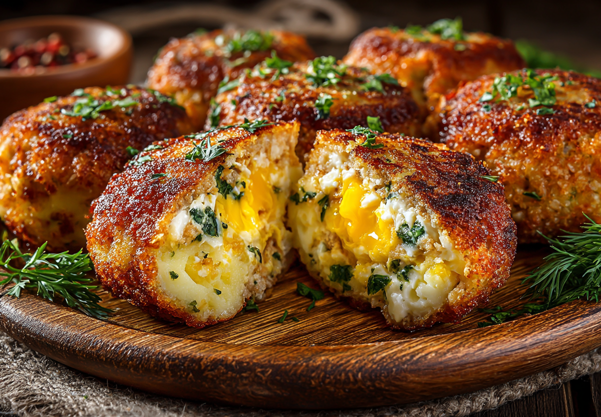 Получается обалденная вкуснятина: нежные, румяные котлеты с хрустящей корочкой, а внутри — расплавленный сыр и кусочки яйца, которые делают каждый кусочек нежным и ароматным.