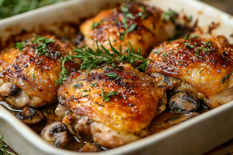 Эта курица — мастер-класс по тому, как сохранить мясо невероятно сочным. Вся магия — в «мундире» из грибов, сыра и сметаны, который выполняет роль термостойкой шубы. Он не дает сокам испаряться, позволяя курице томиться в собственной соку, а сам при этом превращается в золотистую, ароматную и хрустящую корочку с нежнейшей грибной начинкой. Результат — сочное филе и потрясающе вкусная верхушка в каждом кусочке.