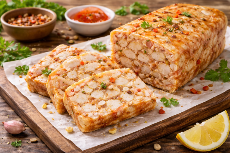 Если вы ищете полезную замену магазинной колбасе, этот куриный сальтисон — находка. Он получается нежным, плотным по текстуре, с яркой пикантной ноткой чили и ароматом специй, но без лишнего жира и добавок. Отличный вариант для бутербродов, нарезки к столу и для тех, кто следит за питанием.