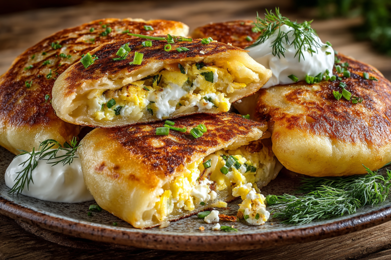 Для зраз килограмм картофеля очищаю, режу на крупные куски и отвариваю в подсоленной воде до полной мягкости. Воду полностью сливаю, картофель разминаю в абсолютно гладкое пюре без молока и масла. Даю пюре полностью остыть до комнатной температуры. В остывшее пюре добавляю одно сырое яйцо, три столовые ложки пшеничной муки, соль и черный перец по вкусу. Тщательно вымешиваю ложкой, а затем руками до получения однородного, пластичного теста, которое не липнет к ладоням. Для начинки четыре вареных яйца мелко рублю ножом. Пучок зеленого лука мелко шинкую. Смешиваю яйца и лук с 30 граммами размягченного сливочного масла. Картофельное тесто делю на 8–10 равных частей. Из каждой части формирую шарик, затем расплющиваю его в ладонях в круглую лепешку толщиной около 1 см. В центр кладу столовую ложку яичной начинки. Края лепешки поднимаю и аккуратно защипываю над начинкой, как у пельменя, формируя овальную или круглую котлетку-зразу. Хорошо прижимаю шов, чтобы он не разошелся. На сковороде разогреваю достаточное количество растительного масла. Обжариваю зразы на среднем огне по 4–5 минут с каждой стороны до красивой золотисто-коричневой корочки. Выкладываю готовые зразы на бумажное полотенце, чтобы стек лишний жир. Подаю горячими, обязательно со сметаной.