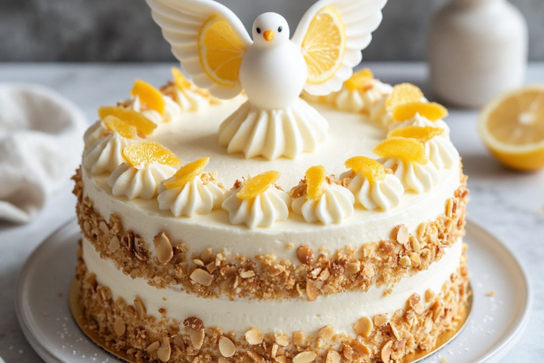 Этот торт — воплощение зимней нежности и праздничной легкости. Он сочетает яркую свежесть лимона с тонким ореховым ароматом миндаля, а воздушный ванильный мусс создает ощущение тающего снежного облака. Идеальный десерт для встречи Нового года — неприторный, с изысканной цитрусовой ноткой, которая освежит вкусовые рецепторы после сытного ужина.