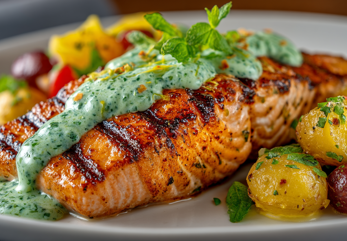 Благородный лосось не требует сложных манипуляций — его богатый вкус раскрывается в паре с правильно подобранными акцентами. Секрет — в легком маринаде-эмульсии, который не перебивает, а оттеняет рыбу.