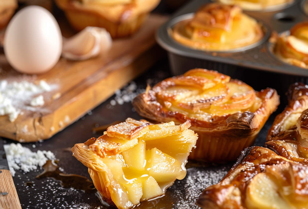 Если под рукой есть готовое слоеное тесто, можно без лишней возни испечь десерт, который выглядит как из витрины пекарни. Эти маффины сочетают хрустящую основу, нежный творожный крем и ароматные яблоки. Готовятся просто, а результат всегда радует.