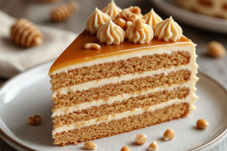 Этот торт — воплощение нежности и той самой сладкой сказки, которая живет в памяти с детства. Его секрет — в удивительно воздушных, тонких как пух коржах с глубоким медовым ароматом и в насыщенном, бархатистом креме на основе вареной сгущенки. Сочетание этих простых, но идеально подобранных компонентов создает магию: торт буквально тает во рту, оставляя послевкусие тепла и домашнего уюта. Первый же кусочек покоряет сбалансированной сладостью и невесомой текстурой, ради которой не жалко потратить время на выпечку.